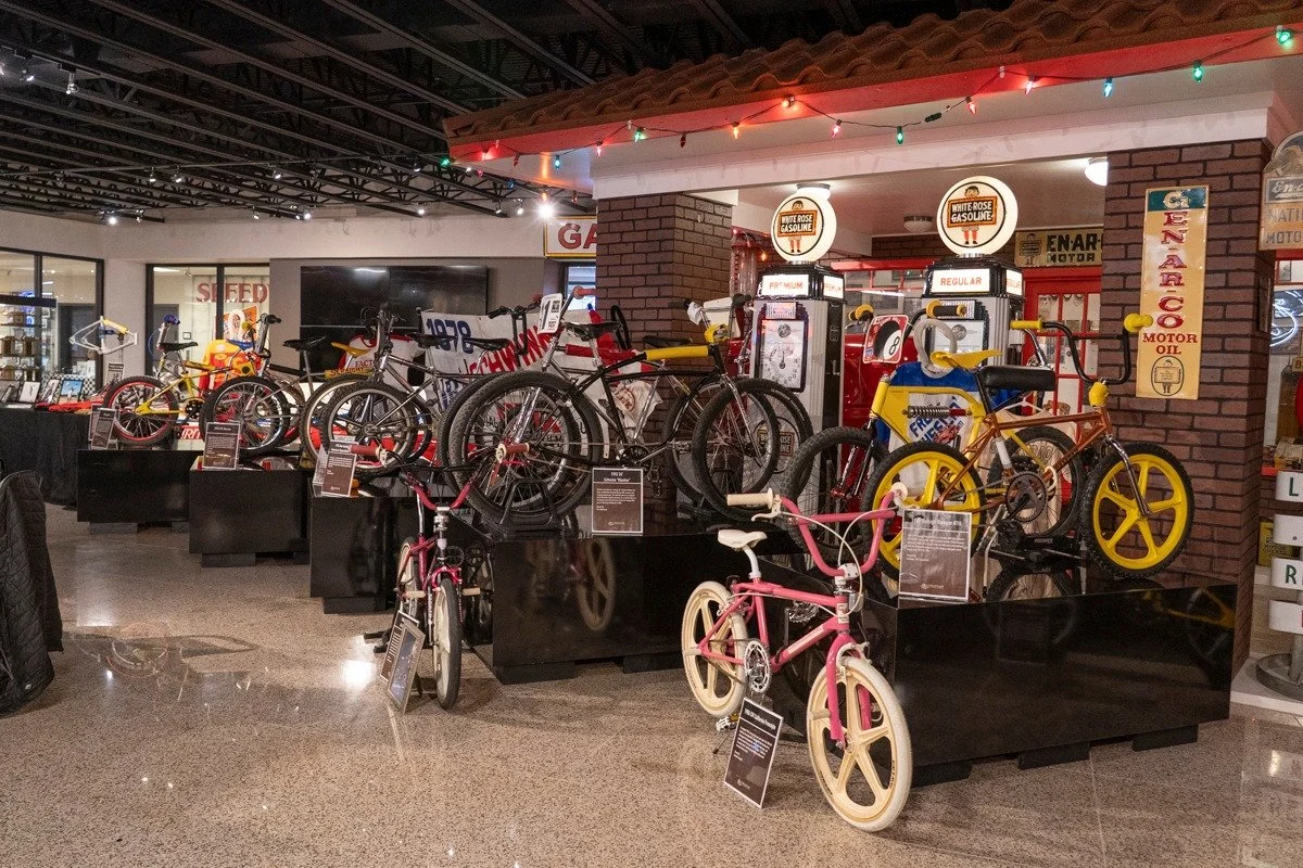 Steve Strope, the renowned custom car builder and owner of Pure Vision Design, maintains a significant collection of vintage BMX bicycles that is currently showcased through collaborations with the Museum of American Speed in Lincoln, Nebraska.